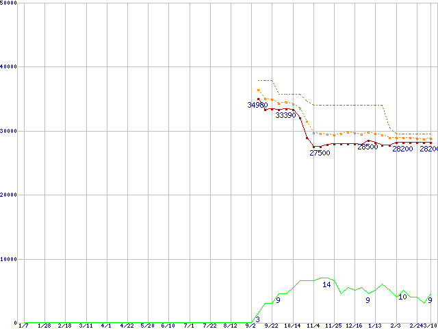 | Turion 64 MT-37 (2GHz,1MB) バルクの価格推移 | | | (2005年1月7日~2006年3月10日) |
