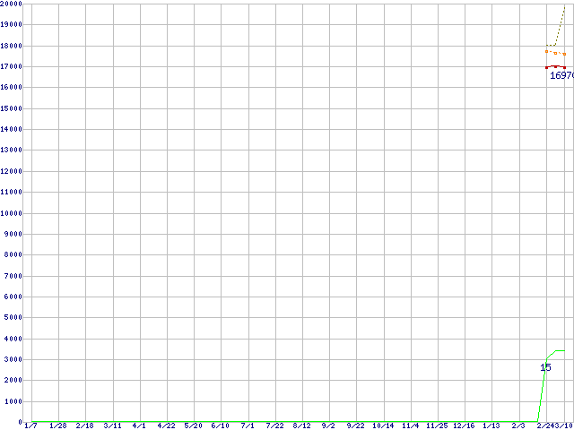 ※このグラフは過去のデータも税率5%相当に調整した税込み相当額のグラフです。 税率変更や、総額表示方式導入(2004年4月)の影響は除いています。 | | | ●凡例 | 最安値 (点線部は販売店未確認 または未調査) | 平均値 | 最高値 | ショップ数 |