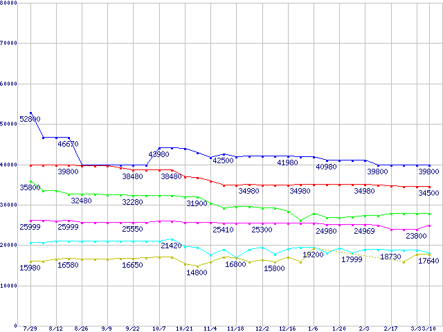 Socket 939 (FSB 1000MHz,L2 1MB)の最安値推移