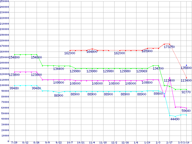 Socket 940 (FSB 1000MHz,L2 1MBx2,Dual Core)の最安値推移