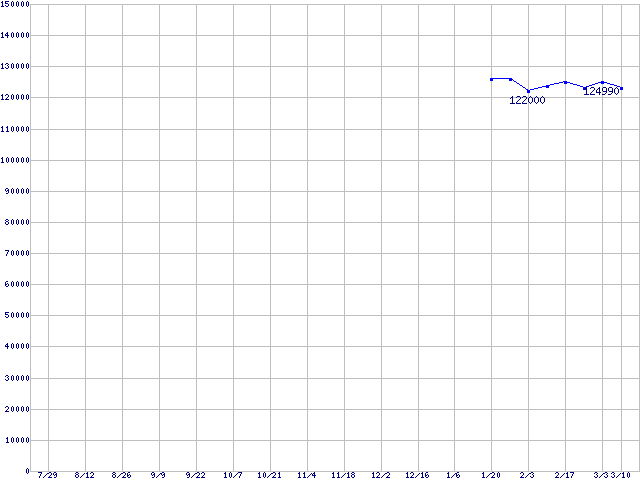 | LGA 775 (FSB 1066MHz,L2 2MB×2,Dual Core,Hyper-Threading,EM64T対応)の最安値推移 | | | (2005年7月29日~2006年3月10日) |