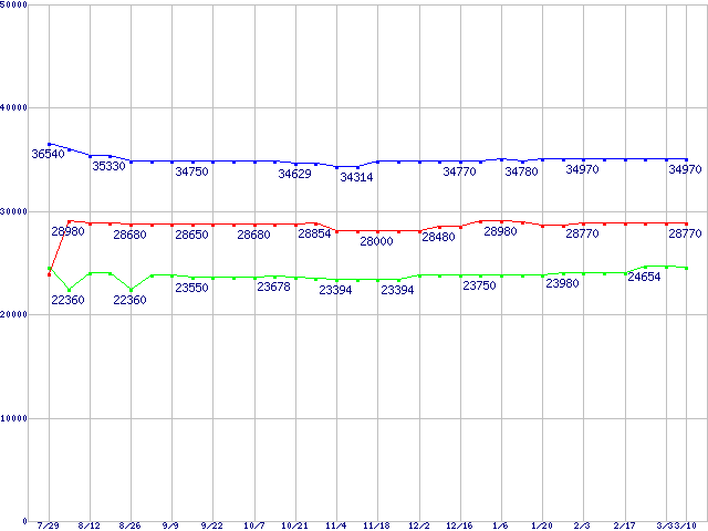 Socket 940 (FSB 1000MHz,L2 1MBx2,Dual Core)の最安値推移
