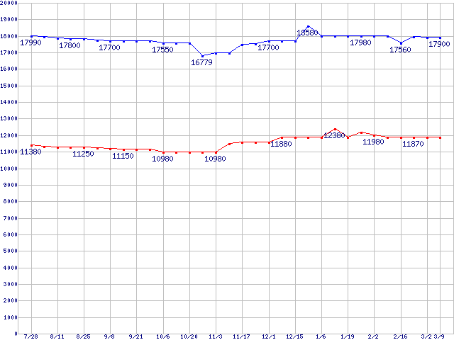 WD Raptor (10000rpm,Serial ATA/150,8MB)の最安値推移