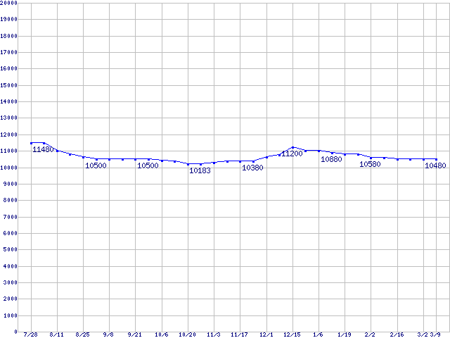 | WD Caviar[Special Edition] (7200rpm,Ultra ATA/100,8MB)の最安値推移 | | | (2005年7月28日~2006年3月9日) |