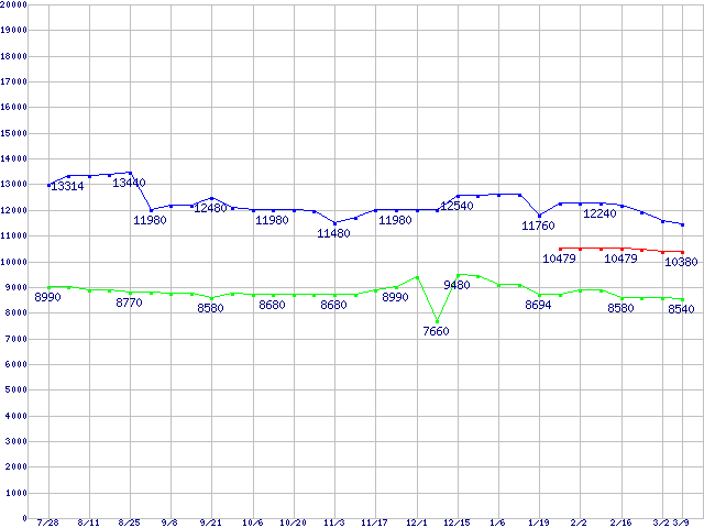 Deskstar 7K80 (7200rpm,Serial ATA II/3Gbps)の最安値推移