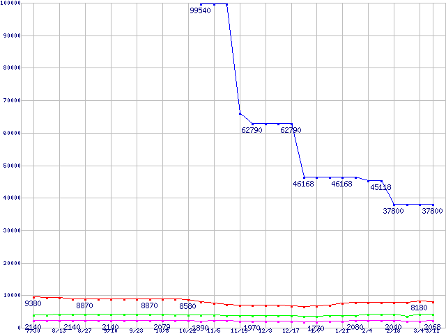 PC2-4200*(DDR2-533) DDR2 SDRAM DIMMの最安値推移