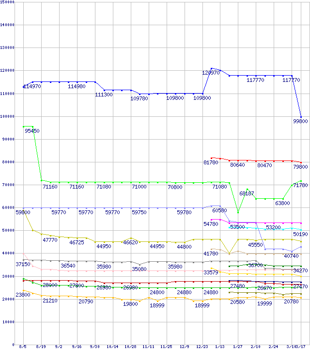 LGA 775・FSB 800MHzの最安値推移