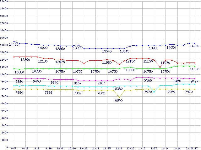 mPGA 479M・FSB 533MHzの最安値推移