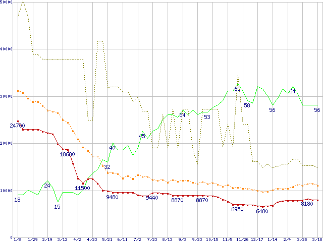| PC2-4200* 1GBの価格推移 | | | (2005年1月8日~2006年3月18日) |