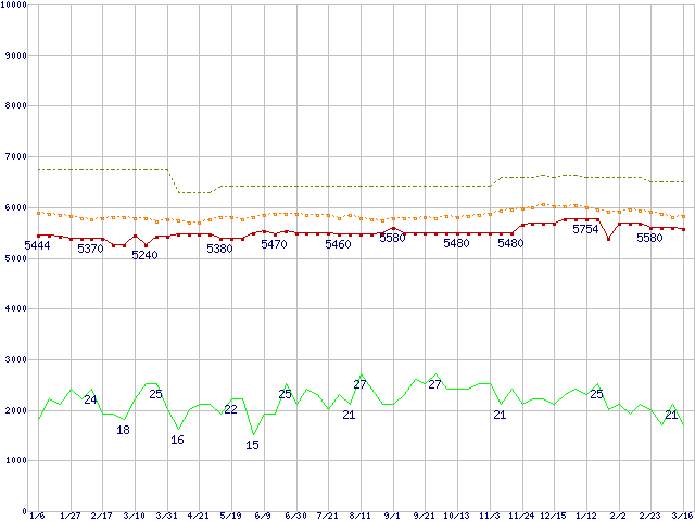 | HDS728080PLAT20 (80GB,2MB)の価格推移 | | | (2005年1月6日~2006年3月16日) |
