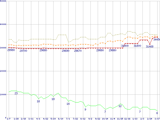 | Pentium 4 3.40E GHzの価格推移 | | | (2005年1月7日~2006年3月17日) |