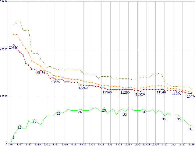 | ST3250823A (250GB)の価格推移 | | | (2005年1月6日~2006年3月16日) |
