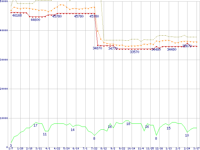| Pentium M 760 (2GHz)の価格推移 | | | (2005年1月7日~2006年3月17日) |