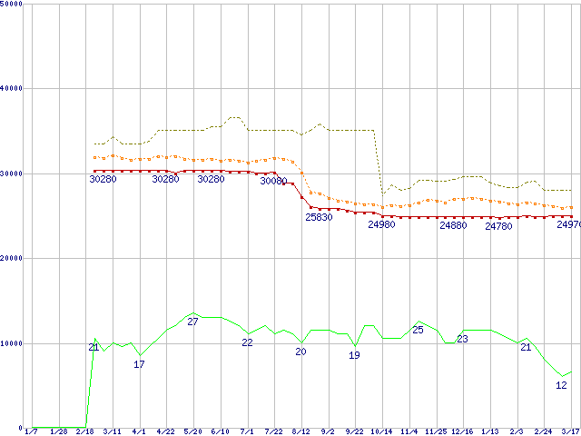 | Pentium 4 640 (3.20GHz)の価格推移 | | | (2005年1月7日~2006年3月17日) |