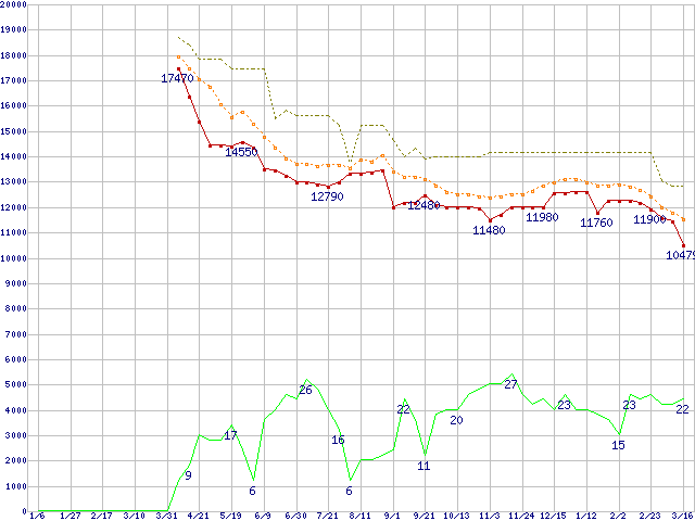 | HDT722525DLA380 (250GB,8MB)の価格推移 | | | (2005年1月6日~2006年3月16日) |