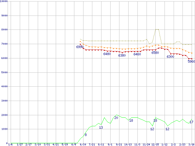 | 6L080P0 (80GB,8MB)の価格推移 | | | (2005年1月6日~2006年3月16日) |