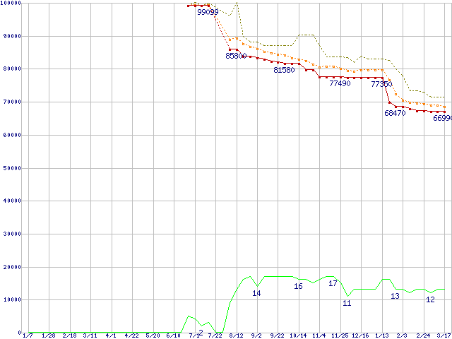 | Athlon 64 X2 4600+ (2.4GHz,L2 512KBx2)の価格推移 | | | (2005年1月7日~2006年3月17日) |