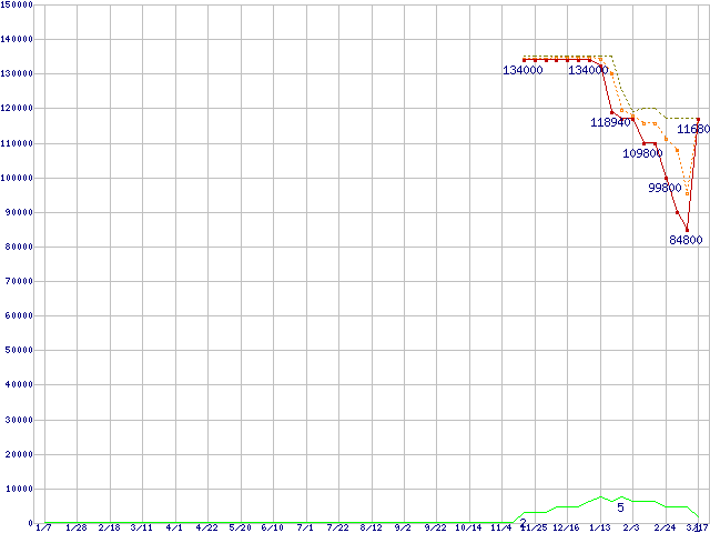 | Opteron 154(2.8GHz)の価格推移 | | | (2005年1月7日~2006年3月17日) |