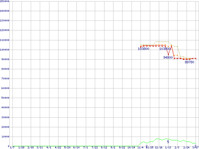 | Opteron 180 (2.4GHz)の価格推移 | | | (2005年1月7日~2006年3月17日) |
