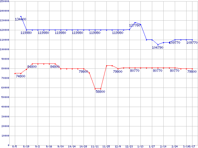 Socket 939 (FSB 1000MHz)の最安値推移