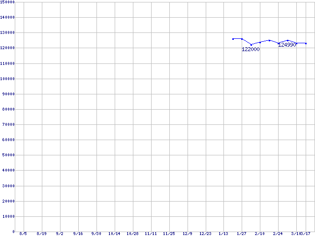 | LGA 775 (FSB 1066MHz,L2 2MB×2,Dual Core,Hyper-Threading,EM64T対応)の最安値推移 | | | (2005年8月5日~2006年3月17日) |