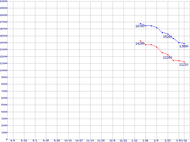 | MaXLine III (7200rpm,16MB,Serial ATA II,3Gbps)の最安値推移 | | | (2005年8月4日~2006年3月16日) |
