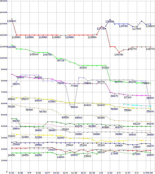 | Socket 939・FSB 1000MHzの最安値推移 | | | (2005年8月12日~2006年3月24日) |