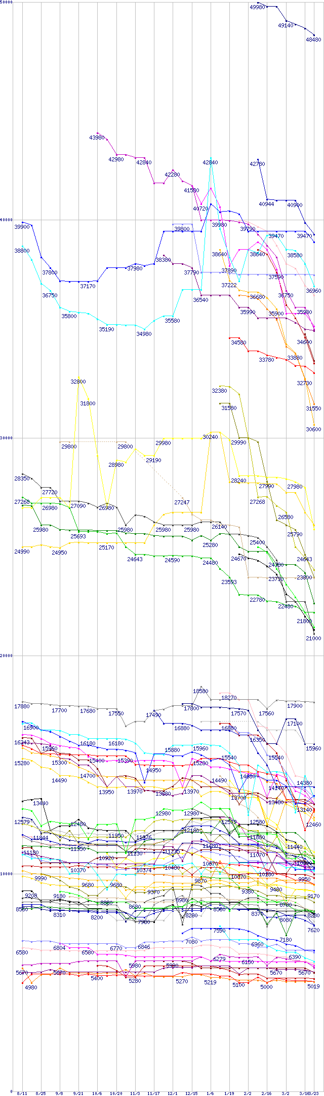 | 凡例 | ST3500641NS (500GB,16MB) | WD1500AHFD (150.0GB) | HDS725050KLA360 (500GB,16MB) | ST3400632NS (400GB,16MB) | HDS725050KLAT80 (500GB,8MB) | ST3500641A (500GB,16MB) | ST3500841A (500GB,8MB) | ST3500641AS (500GB,16MB) | ST3400832NS (400GB,8MB) | 7H500F0 (500GB) | 7H500R0 (500GB) | WD1500ADFD (150.0GB) | 6H500R0 (500GB) | 6H500F0 (500GB) | HDS724040KLAT80 (400GB,8MB) | HDS724040KLSA80 (400GB,8MB) | ST3400633AS (400GB,16MB) | ST3400633A (400GB,16MB) | WD4000YR (400GB) | ST3400832A (400GB) | WD4000KD (400GB) | 6H400F0 (400GB) | 6H400R0 (400GB) | ST3400832AS (400GB) | WD740GD (74.3GB) | WD3200KS (320GB) | ST3250623NS (250GB,16MB) | ST3250823NS (250GB,8MB) | 7L300S0 (300GB) | 7V300F0 (300GB) | ST3300831AS (300GB) | ST3300622AS (300GB,16MB) | 7L300R0 (300GB) | WD3200JS (320GB) | WD3200JB (320GB) | WD3200JD (320GB) | ST3300622A (300GB,16MB) | ST3300831A (300GB) | 6V300F0 (300GB,16MB) | 6L300S0 (300GB,16MB) | 6L300R0 (300GB,16MB) | 7V250F0 (250GB) | 7L250R0 (250GB) | WD2500KS (250GB) | ST3250824AS (250GB,8MB) | WD360GD (36.7GB) | ST3250824A (250GB,8MB) | 7L250S0 (250GB) | HDT722525DLA380 (250GB,8MB) | 6V250F0 (250GB,16MB) | 6L250S0 (250GB,16MB) | ST3250823AS (250GB) | WD2500JS (250GB) | HDT722525DLAT80 (250GB,8MB) | ST3200827A (200GB,8MB) | WD2500JB (250GB) | WD2500BB (250GB) | ST3250823A (250GB) | HDT722520DLA380 (200GB,8MB) | ST3200827AS (200GB,8MB) | 6L250R0 (250GB,16MB) | ST3200826AS (200GB) | ST3200826A (200GB) | 6V200E0 (200GB,8MB) | HDT722520DLAT80 (200GB,8MB) | 6L200M0 (200GB,8MB) | 6L200P0 (200GB,8MB) | ST3160812AS (160GB,8MB) | ST3120813AS (120GB,8MB) | ST3160812A (160GB,8MB) | ST3120814A (120GB,8MB) | 6L120M0 (120GB,8MB) | 6V160E0 (160GB,8MB) | ST3160212A (160GB,2MB) | WD1600JS (160GB) | HDT722516DLA380 (160GB,8MB) | 6L160M0 (160GB,8MB) | ST3120213A (120GB,2MB) | 6L160P0 (160GB,8MB) | HDT722516DLAT80 (160GB,8MB) | ST3808110AS (80GB,8MB) | 6L080M0 (80GB,8MB) | 6V080E0 (80GB,8MB) | 6L080P0 (80GB,8MB) | ST3802110A (80GB,2MB) | HDS728080PLA380 (80GB,8MB) | HDS728080PLAT20 (80GB,2MB) | HDS728040PLA320 (40GB,2MB) | ST3402111A (40GB,2MB) | HDS728040PLAT20 (40GB,2MB) | ST340015A (40GB) | ※製品名をクリックすると個別のグラフを表示します ※点線部は販売店が確認できなかった、または調査データがないことを示します |