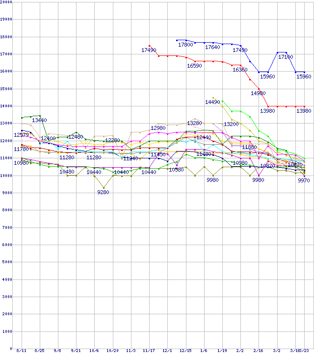 ※点線部は販売店が確認できなかった、または調査データがないことを示します