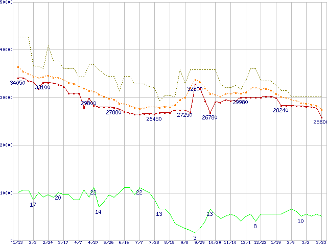 | HDS724040KLSA80 (400GB,8MB)の価格推移 | | | (2005年1月13日~2006年3月23日) |