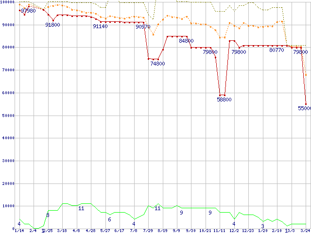 | Athlon 64 FX-55 (2.6GHz)の価格推移 | | | (2005年1月14日~2006年3月24日) |