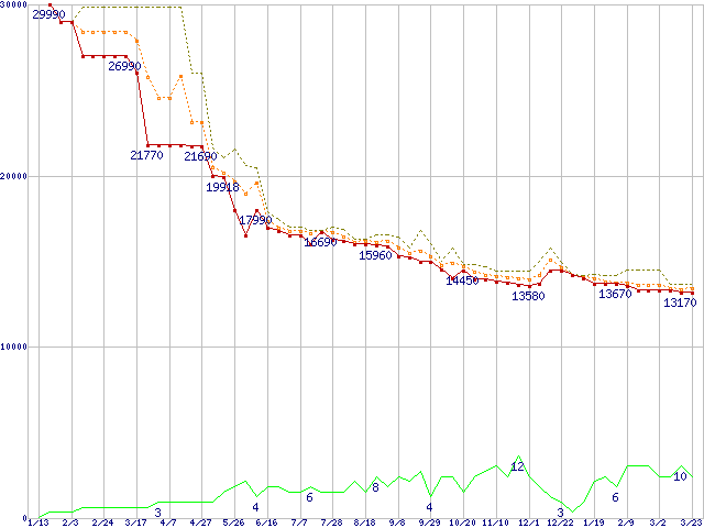 | WD3200JB (320GB)の価格推移 | | | (2005年1月13日~2006年3月23日) |
