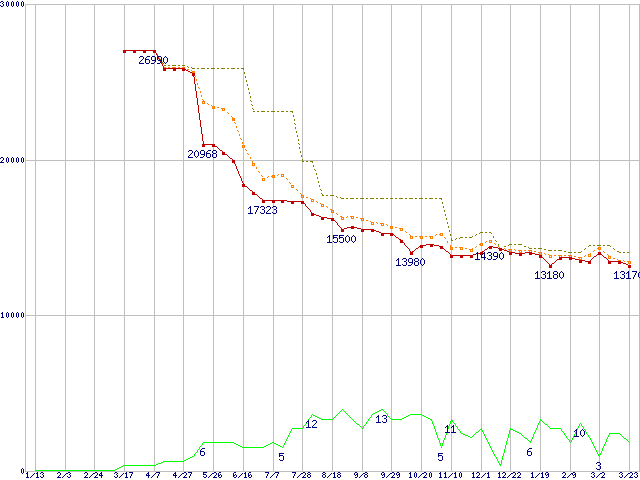 | WD3200JD (320GB)の価格推移 | | | (2005年1月13日~2006年3月23日) |