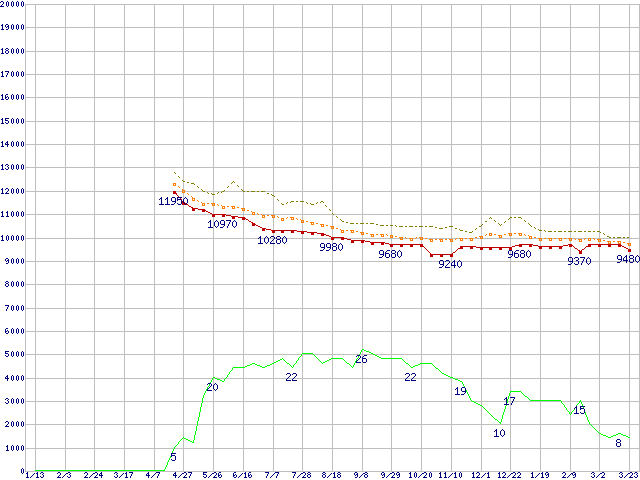 | 6L200M0 (200GB,8MB)の価格推移 | | | (2005年1月13日~2006年3月23日) |