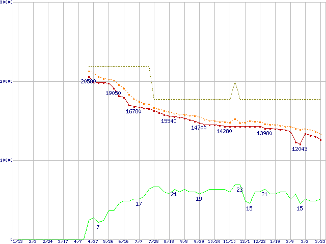 | 6L300S0 (300GB,16MB)の価格推移 | | | (2005年1月13日~2006年3月23日) |