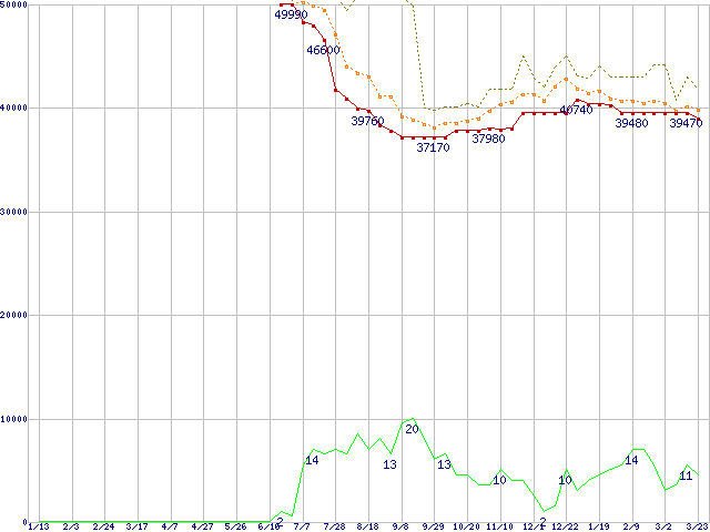 | HDS725050KLA360 (500GB,16MB)の価格推移 | | | (2005年1月13日~2006年3月23日) |