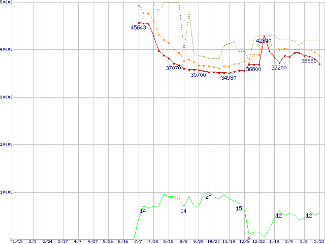 | HDS725050KLAT80 (500GB,8MB)の価格推移 | | | (2005年1月13日~2006年3月23日) |