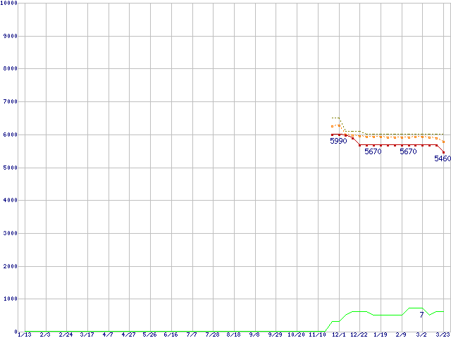 | HDS728040PLA320 (40GB,2MB)の価格推移 | | | (2005年1月13日~2006年3月23日) |