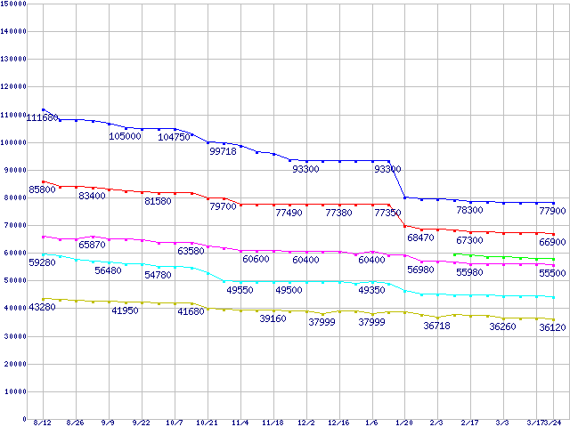Socket 939 (FSB 1000MHz,L2 1MB)の最安値推移