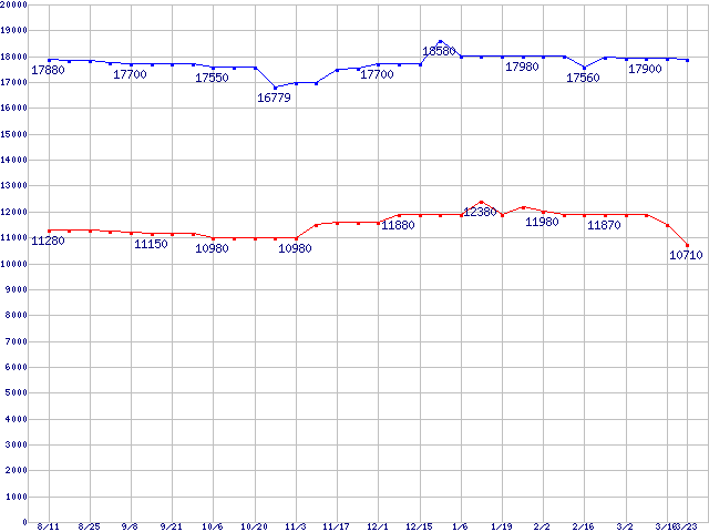 WD Raptor (10000rpm,Serial ATA/150,8MB)の最安値推移
