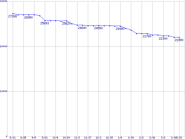 WD Caviar SE (7200rpm,Serial ATA II,8MB)の最安値推移