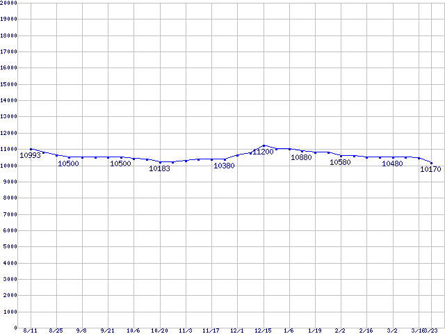 | WD Caviar[Special Edition] (7200rpm,Ultra ATA/100,8MB)の最安値推移 | | | (2005年8月11日~2006年3月23日) |