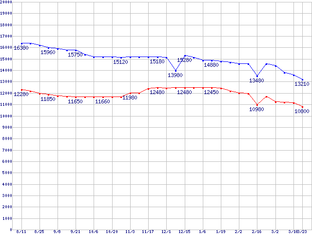 | MaXLine III (7200rpm,16MB,Ultra ATA/133,RoHS指令準拠)の最安値推移 | | | (2005年8月11日~2006年3月23日) |