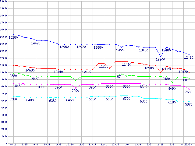| DiamondMax 10 (7200rpm,Ultra ATA/133,RoHS指令準拠)の最安値推移 | | | (2005年8月11日~2006年3月23日) |