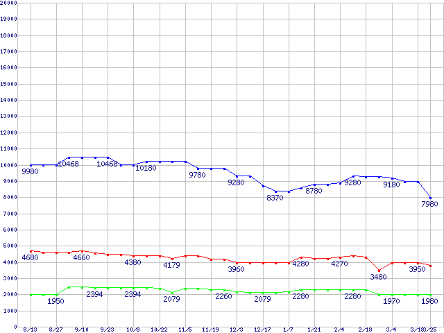 PC3200(DDR400) DDR SDRAM DIMMの最安値推移