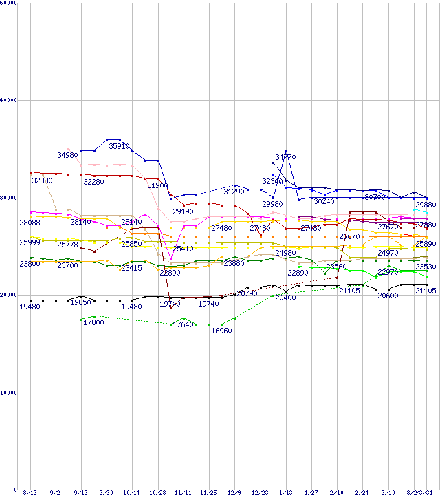 CPU主要製品(最安値2万円~3万円未満)の最安値推移