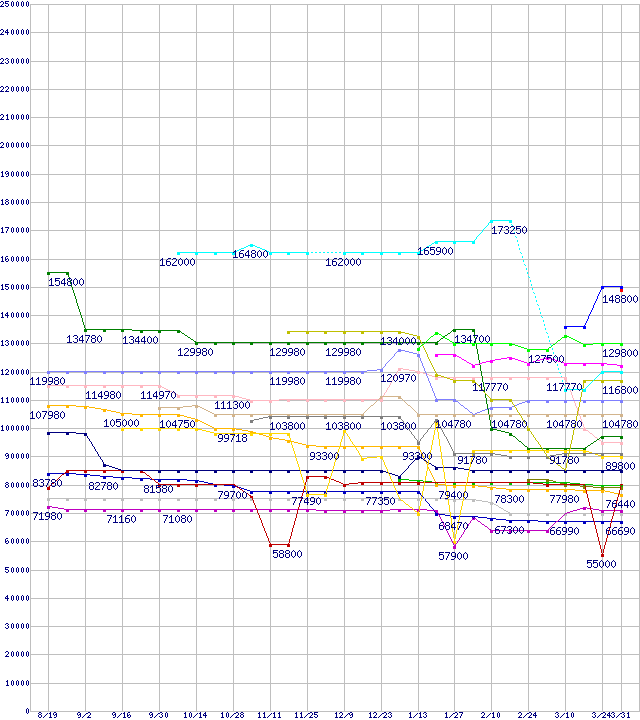 LGA 775・FSB 800MHzの最安値推移