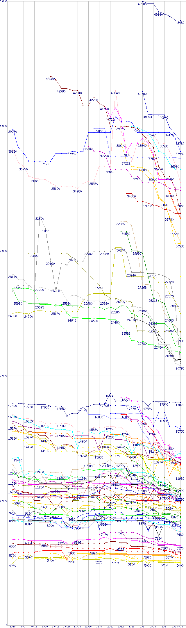 | HDD主要製品の最安値推移 | | | (2005年8月18日~2006年3月30日) |