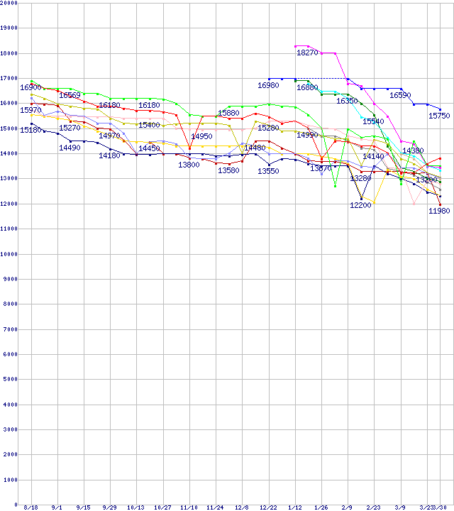 ※点線部は販売店が確認できなかった、または調査データがないことを示します