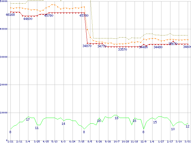 | Pentium M 760 (2GHz)の価格推移 | | | (2005年1月21日~2006年3月31日) |